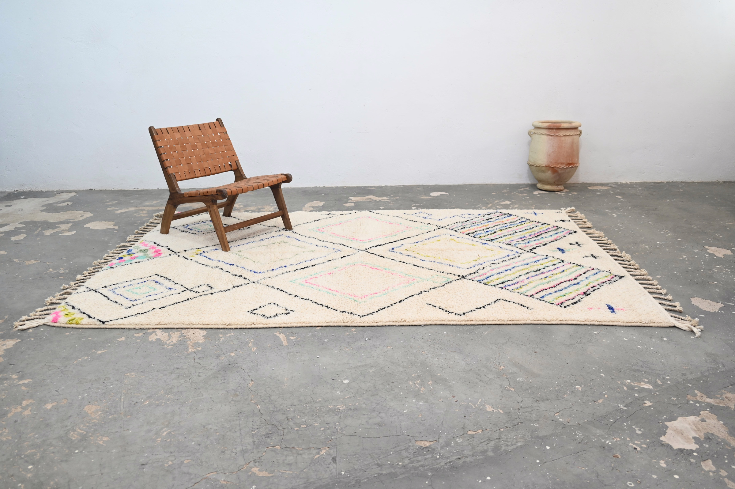 From the Azilal region of the Middle Atlas comes this singular textile, woven without haste in the tradition of generations. Measuring 310 × 210 cm, this piece embodies the principle that meaningful objects require time, attention, and human intention.