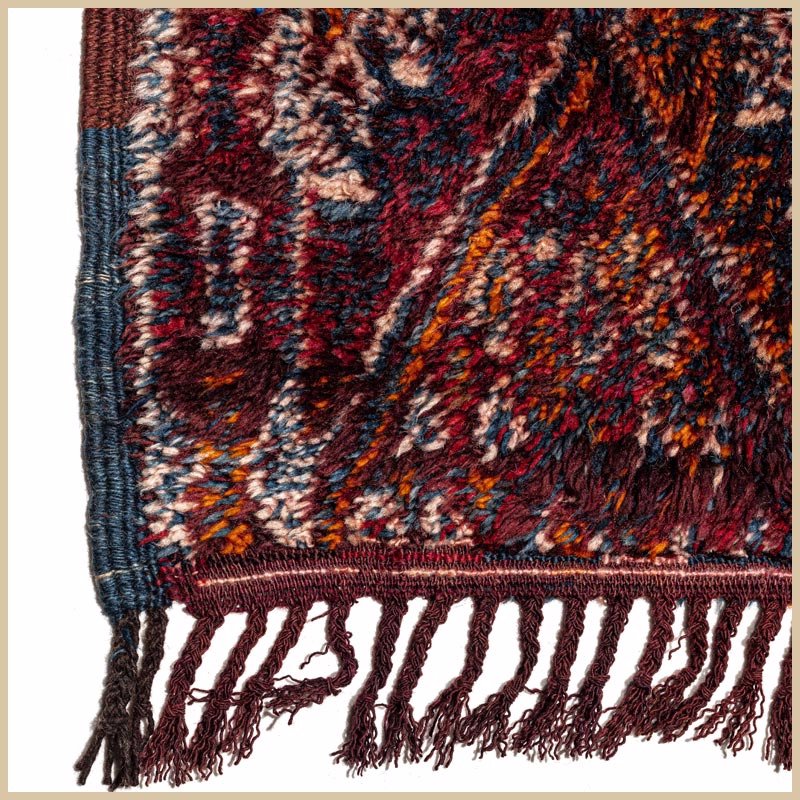 This textile emerges from generations of Atlas Mountain craft. Virgin wool, hand-spun and naturally dyed, takes form over weeks on traditional looms. No automation. No urgency. Only time and intention.