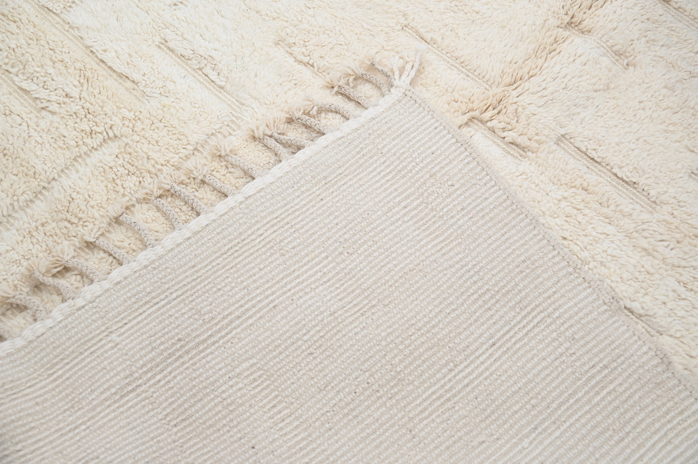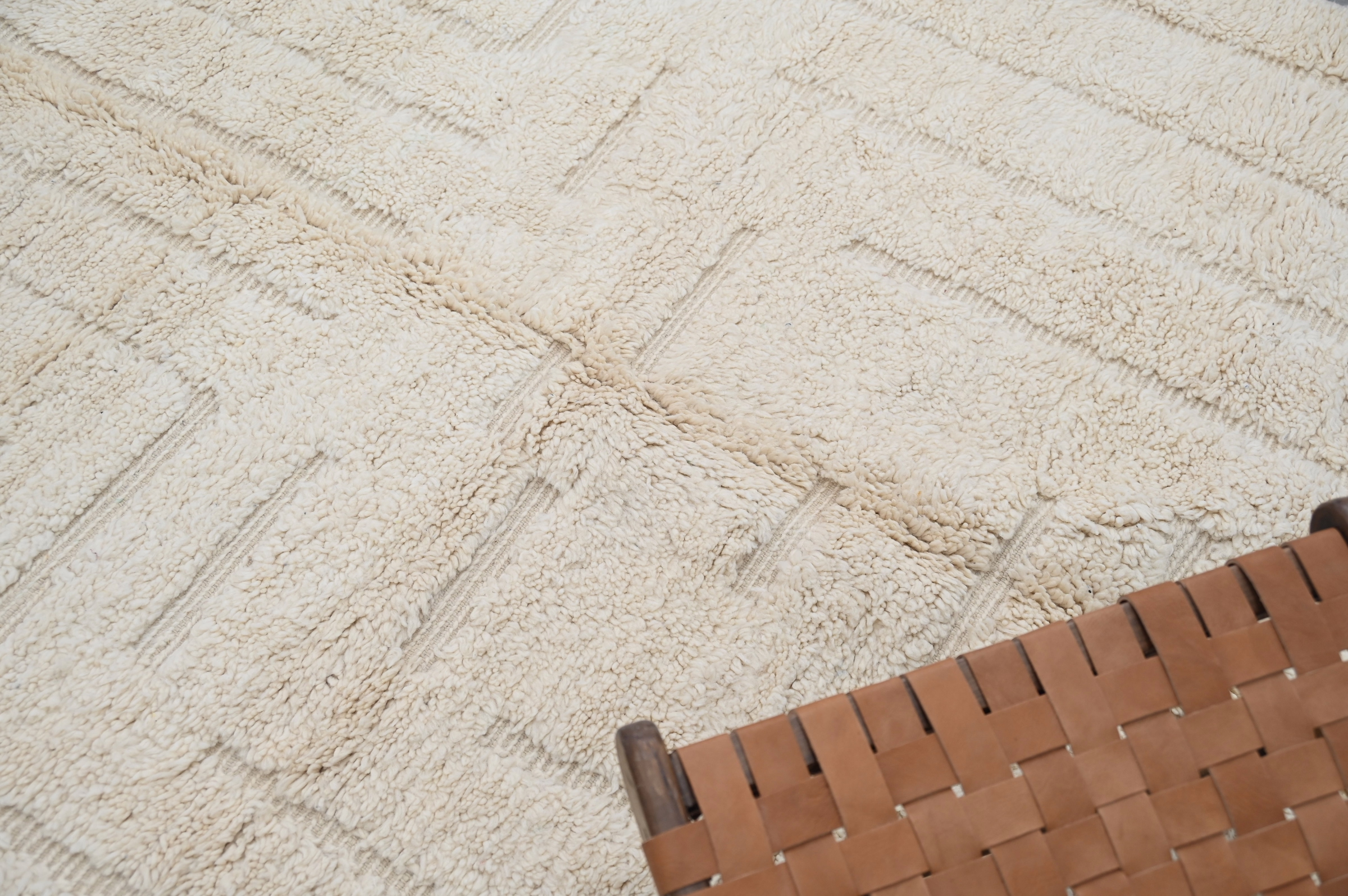 A textile of uncommon presence from the Atlas Mountains. Measuring 295 × 205 cm, this piece represents the intersection of ancestral technique and contemporary restraint—a piece for interiors that value substance over statement.