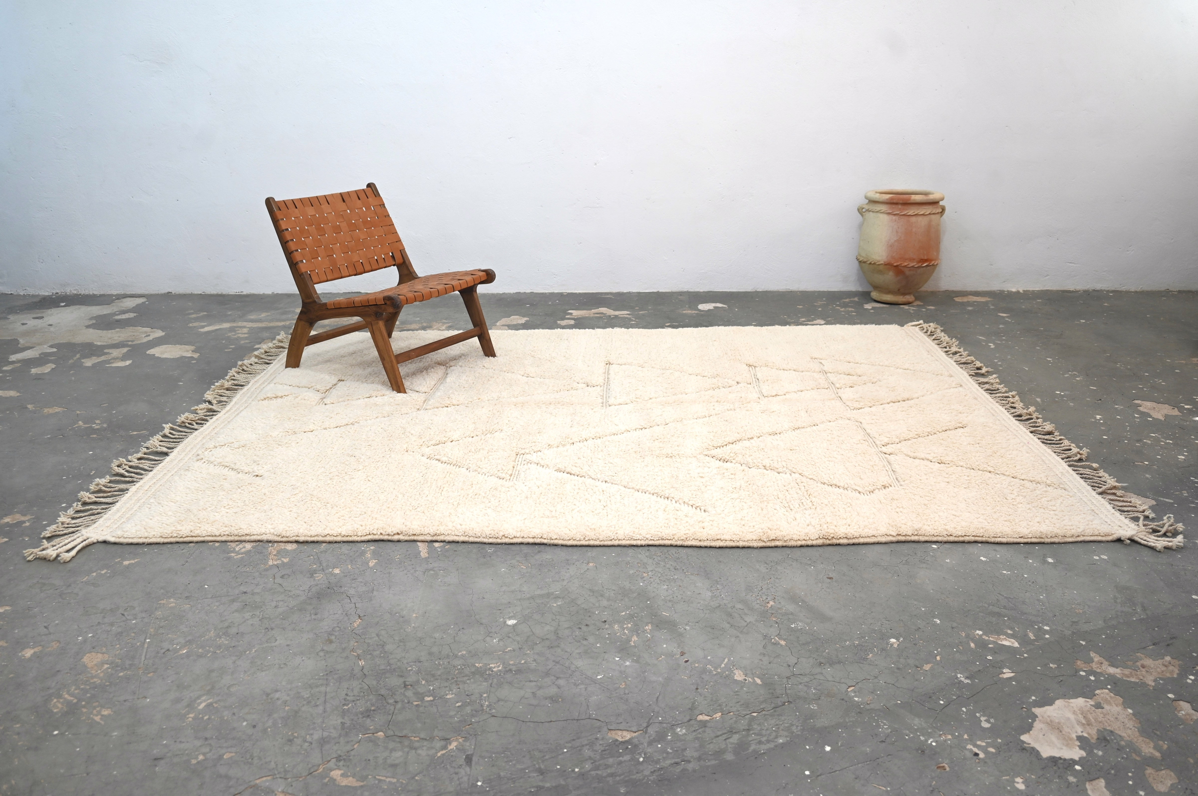 A textile of uncommon presence from the Atlas Mountains. Measuring 310 × 225 cm, this piece represents the intersection of ancestral technique and contemporary restraint—a piece for interiors that value substance over statement.