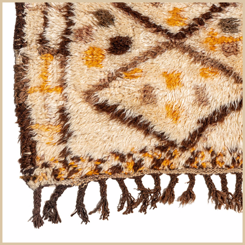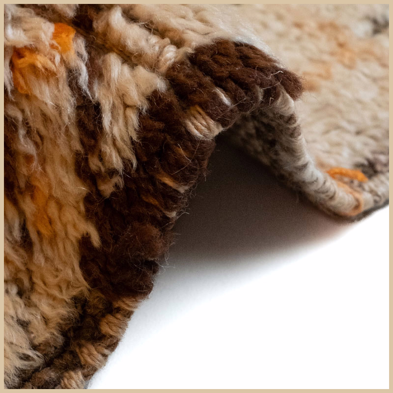 This textile emerges from generations of Atlas Mountain craft. Virgin wool, hand-spun and naturally dyed, takes form over weeks on traditional looms. No automation. No urgency. Only time and intention.