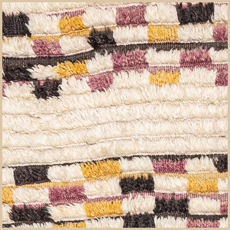 This textile emerges from generations of Atlas Mountain craft. Virgin wool, hand-spun and naturally dyed, takes form over weeks on traditional looms. No automation. No urgency. Only time and intention.