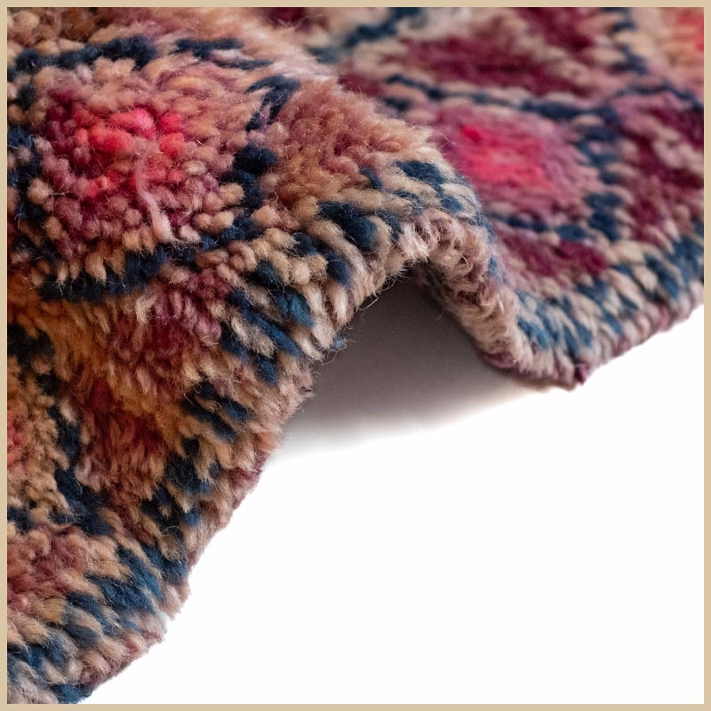 This textile emerges from generations of Atlas Mountain craft. Virgin wool, hand-spun and naturally dyed, takes form over weeks on traditional looms. No automation. No urgency. Only time and intention.