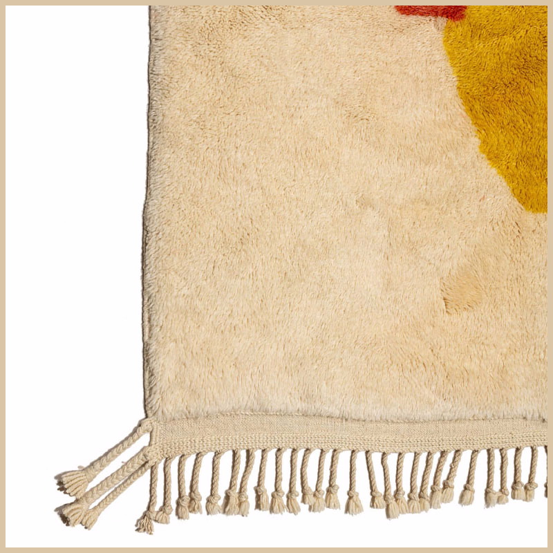 This textile emerges from generations of Atlas Mountain craft. Virgin wool, hand-spun and naturally dyed, takes form over weeks on traditional looms. No automation. No urgency. Only time and intention.