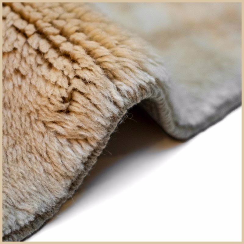 This textile emerges from generations of Atlas Mountain craft. Virgin wool, hand-spun and naturally dyed, takes form over weeks on traditional looms. No automation. No urgency. Only time and intention.