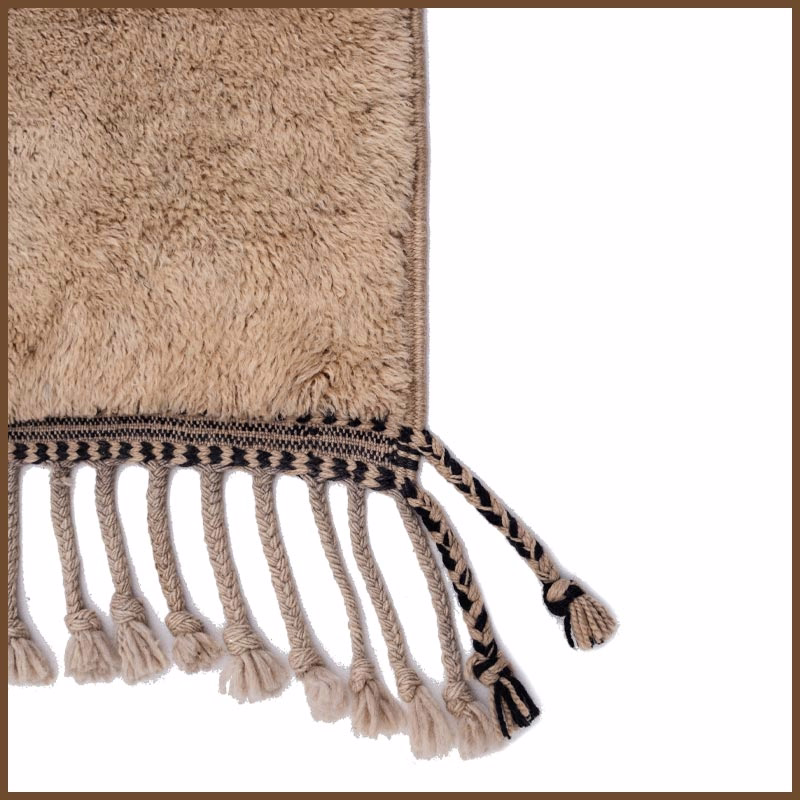 This textile emerges from generations of Atlas Mountain craft. Virgin wool, hand-spun and naturally dyed, takes form over weeks on traditional looms. No automation. No urgency. Only time and intention.