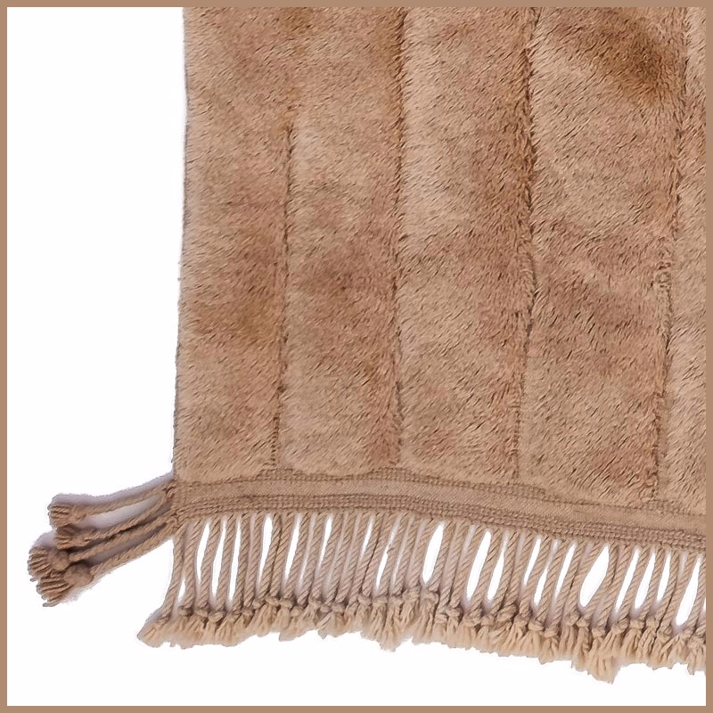 This textile emerges from generations of Atlas Mountain craft. Virgin wool, hand-spun and naturally dyed, takes form over weeks on traditional looms. No automation. No urgency. Only time and intention.