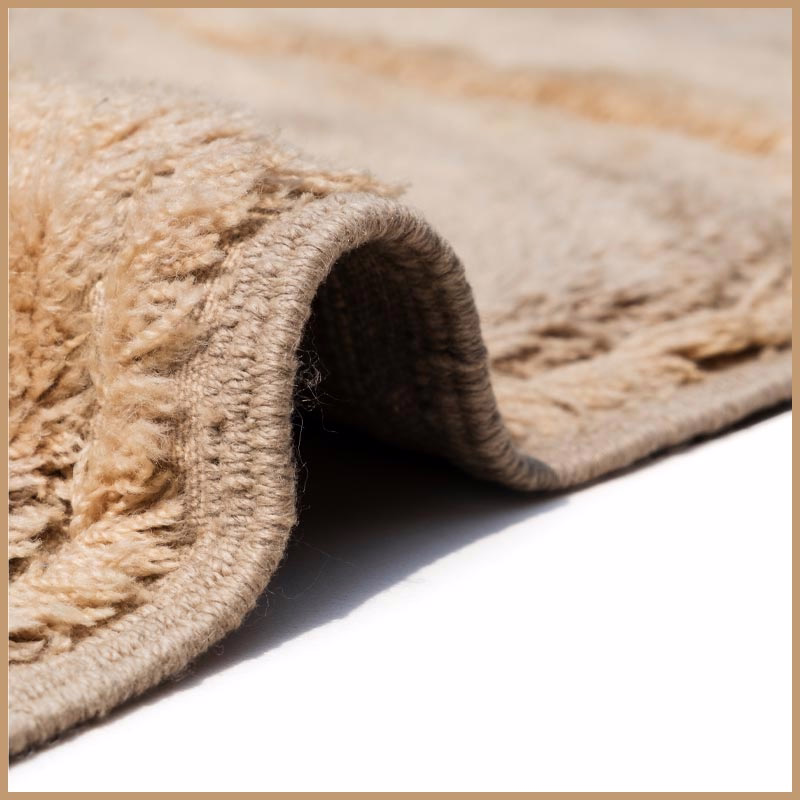 This textile emerges from generations of Atlas Mountain craft. Virgin wool, hand-spun and naturally dyed, takes form over weeks on traditional looms. No automation. No urgency. Only time and intention.