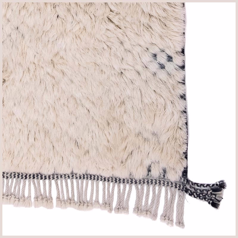 This textile emerges from generations of Atlas Mountain craft. Virgin wool, hand-spun and naturally dyed, takes form over weeks on traditional looms. No automation. No urgency. Only time and intention.