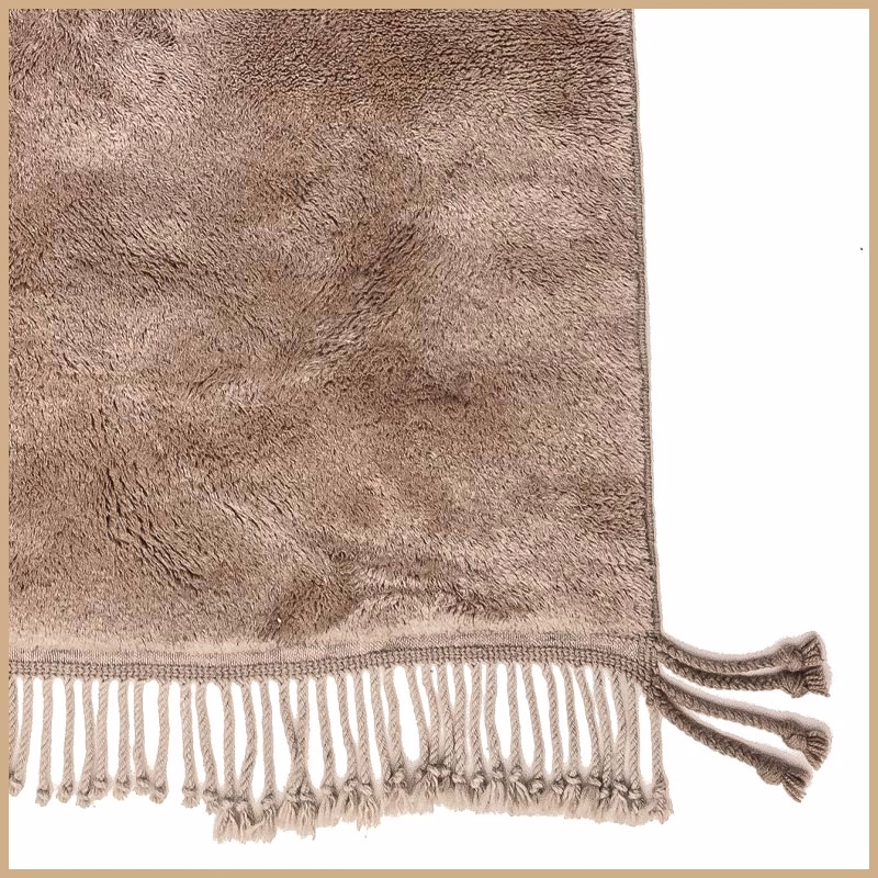 This textile emerges from generations of Atlas Mountain craft. Virgin wool, hand-spun and naturally dyed, takes form over weeks on traditional looms. No automation. No urgency. Only time and intention.