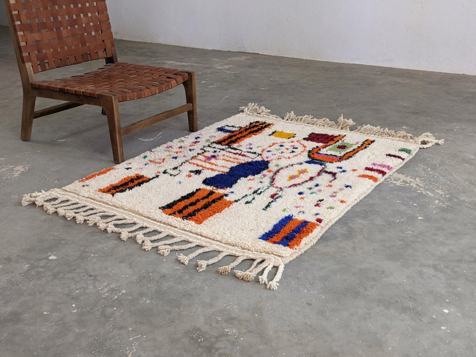 Handwoven in the Azilal region of the Middle Atlas, each piece emerges from a dialogue between material and maker. Measuring 138 × 107 cm, this piece carries the quiet rhythm of slow craftsmanship—wool prepared by hand, patterns emerging over weeks of focused work.
