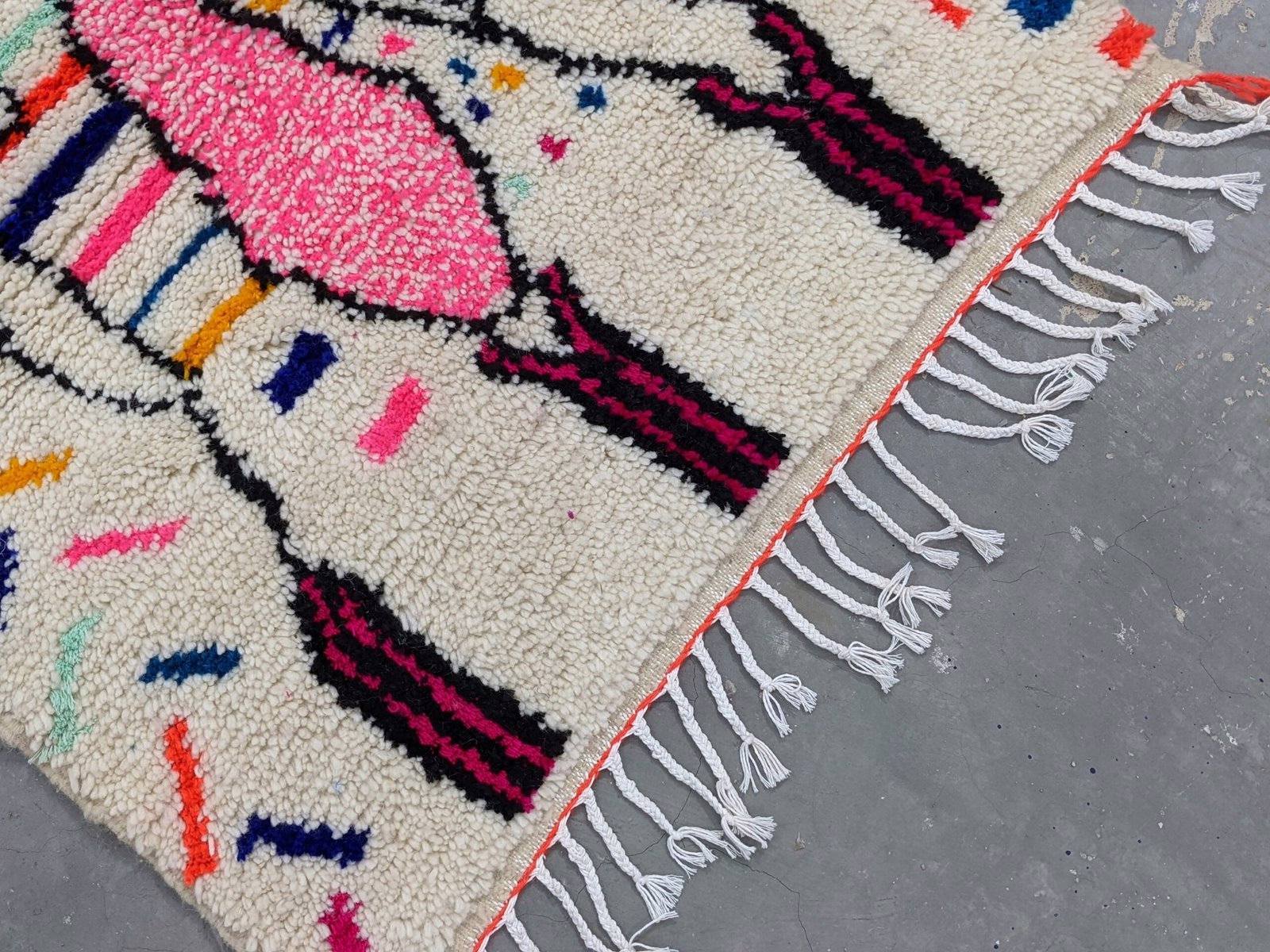 Handwoven in the Azilal region of the Middle Atlas, each piece emerges from a dialogue between material and maker. Measuring 138 × 97 cm, this piece carries the quiet rhythm of slow craftsmanship—wool prepared by hand, patterns emerging over weeks of focused work.