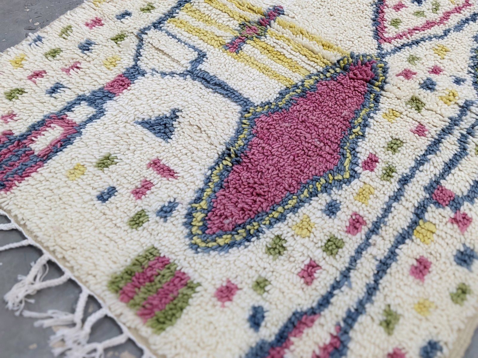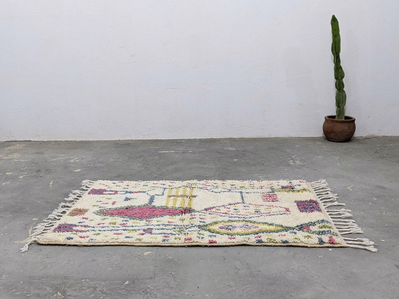 Handwoven in the Azilal region of the Middle Atlas, each piece emerges from a dialogue between material and maker. Measuring 149 × 103 cm, this piece carries the quiet rhythm of slow craftsmanship—wool prepared by hand, patterns emerging over weeks of focused work.