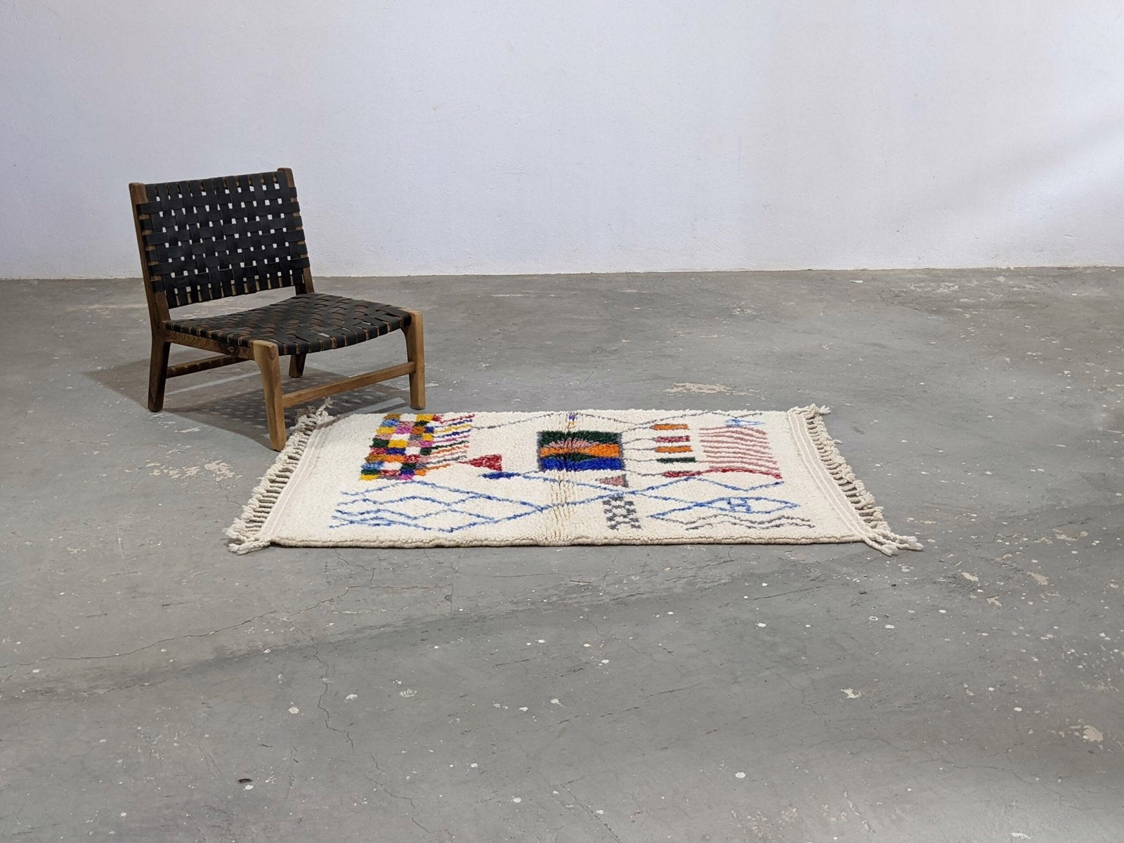 Handwoven in the Azilal region of the Middle Atlas, each piece emerges from a dialogue between material and maker. Measuring 150 × 110 cm, this piece carries the quiet rhythm of slow craftsmanship—wool prepared by hand, patterns emerging over weeks of focused work.