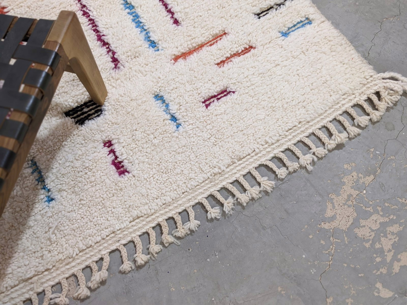 A textile of uncommon presence from the Azilal region of the Middle Atlas. Measuring 150 × 112 cm, this piece represents the intersection of ancestral technique and contemporary restraint—a piece for interiors that value substance over statement.