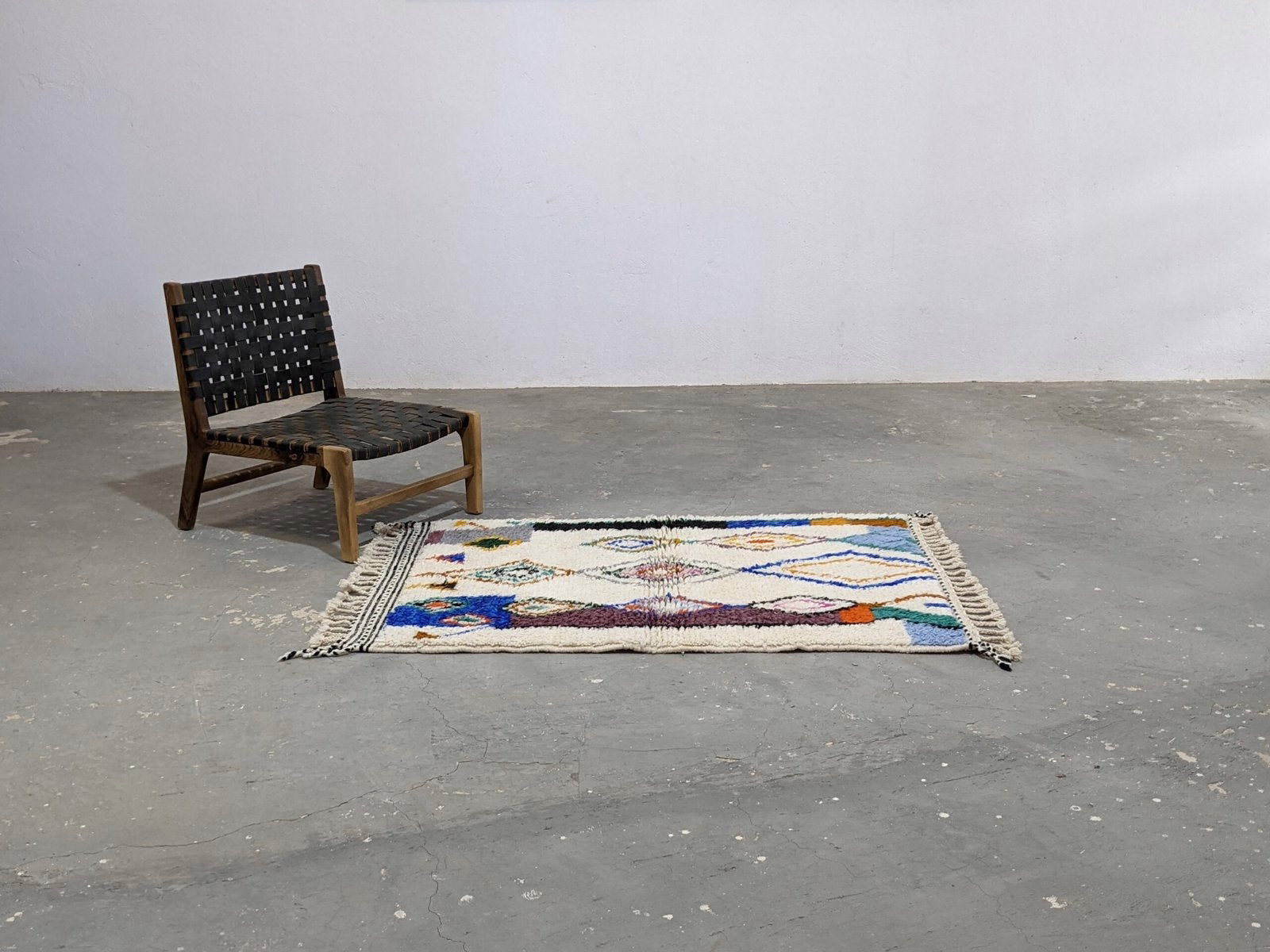 A textile of uncommon presence from the Azilal region of the Middle Atlas. Measuring 153 × 108 cm, this piece represents the intersection of ancestral technique and contemporary restraint—a piece for interiors that value substance over statement.