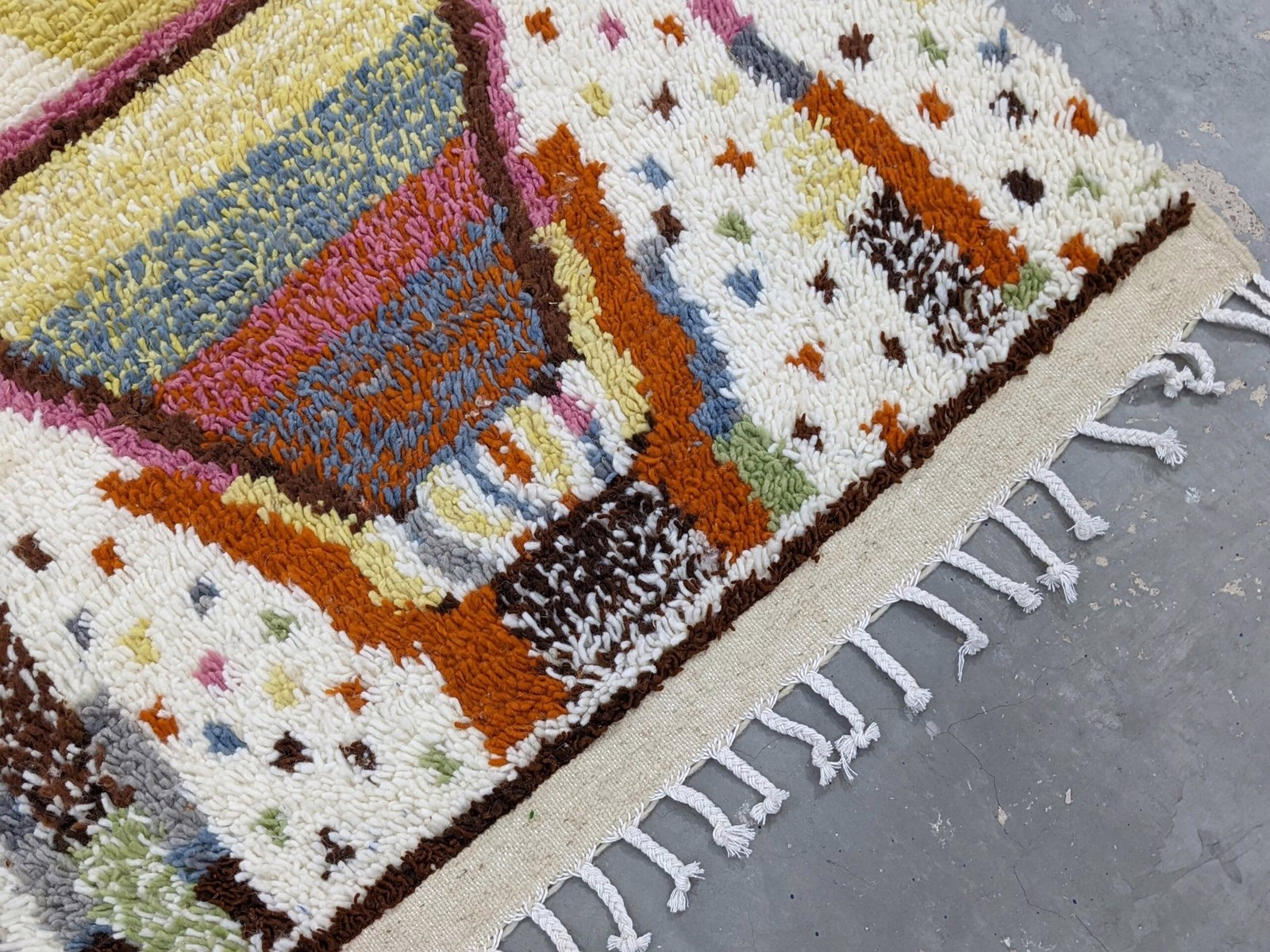 A textile of uncommon presence from the Azilal region of the Middle Atlas. Measuring 154 × 103 cm, this piece represents the intersection of ancestral technique and contemporary restraint—a piece for interiors that value substance over statement.
