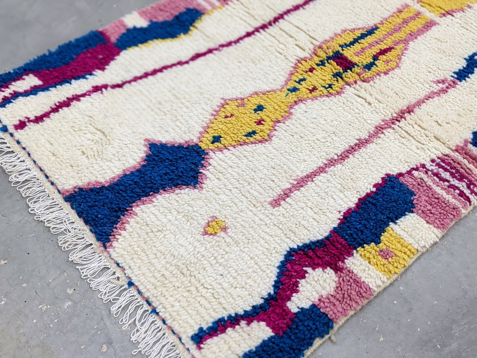 A textile of uncommon presence from the Azilal region of the Middle Atlas. Measuring 161 × 100 cm, this piece represents the intersection of ancestral technique and contemporary restraint—a piece for interiors that value substance over statement.