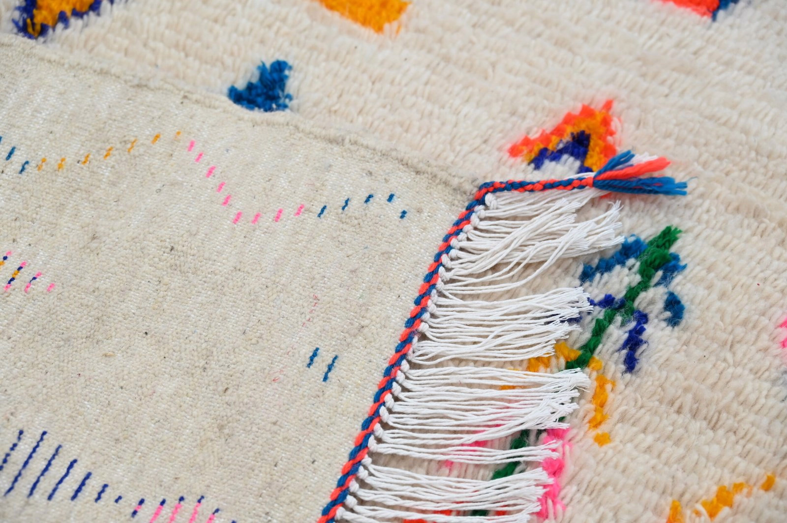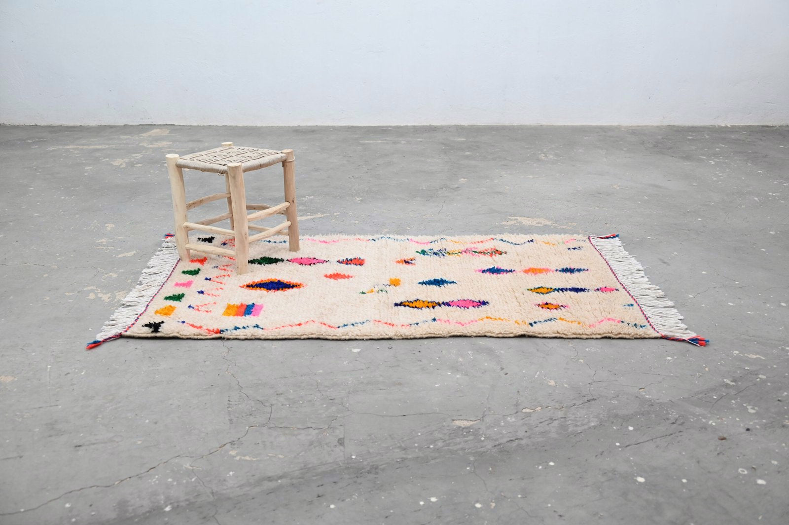 A textile of uncommon presence from the Azilal region of the Middle Atlas. Measuring 164 × 91 cm, this piece represents the intersection of ancestral technique and contemporary restraint—a piece for interiors that value substance over statement.