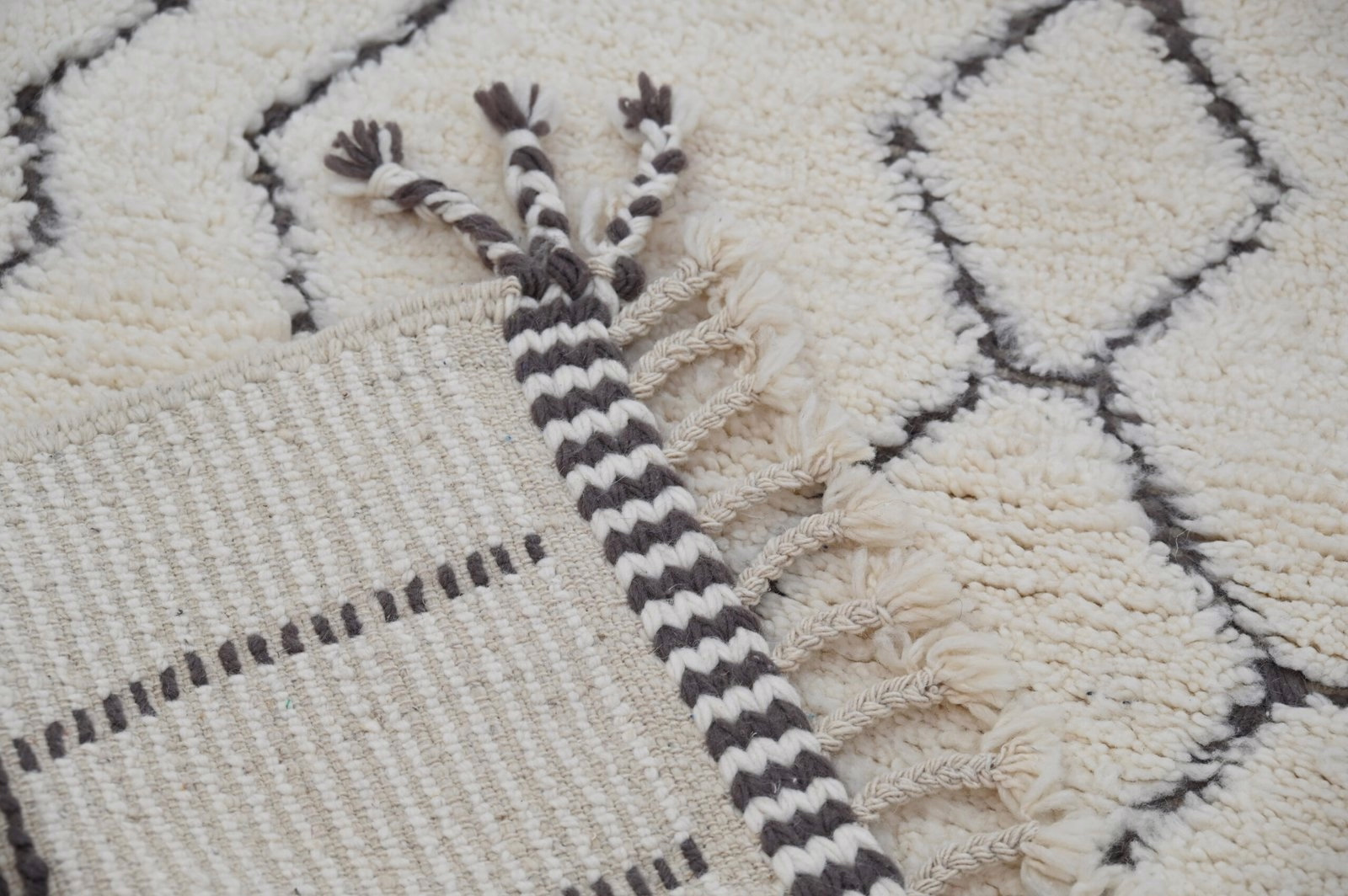 A textile of uncommon presence from the Atlas Mountains. Measuring 140 × 108 cm, this piece represents the intersection of ancestral technique and contemporary restraint—a piece for interiors that value substance over statement.