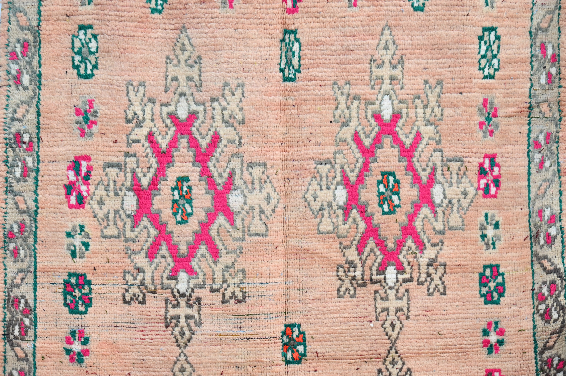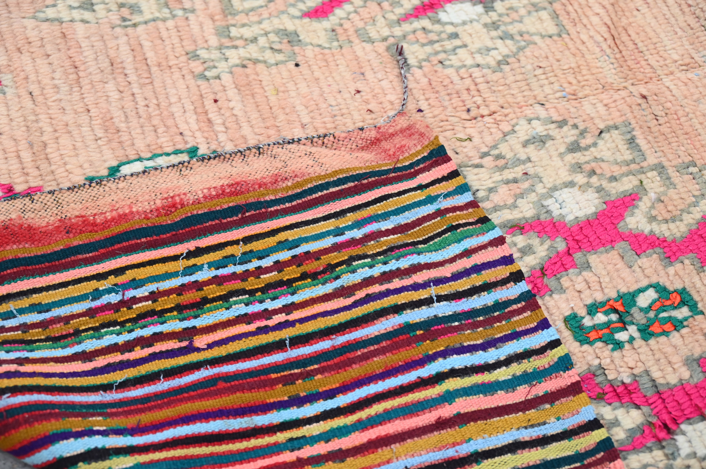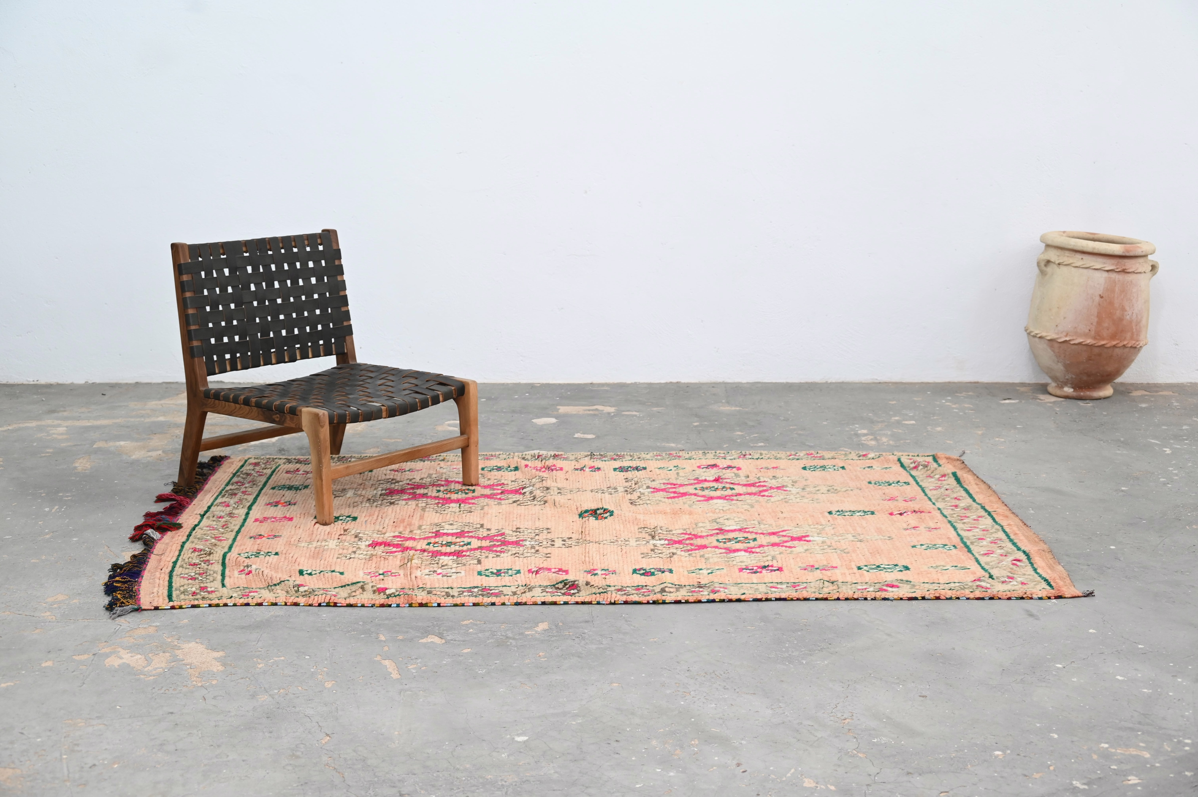 Handwoven in the Atlas Mountains, each piece emerges from a dialogue between material and maker. Measuring 240 × 152 cm, this piece carries the quiet rhythm of slow craftsmanship—wool prepared by hand, patterns emerging over weeks of focused work.