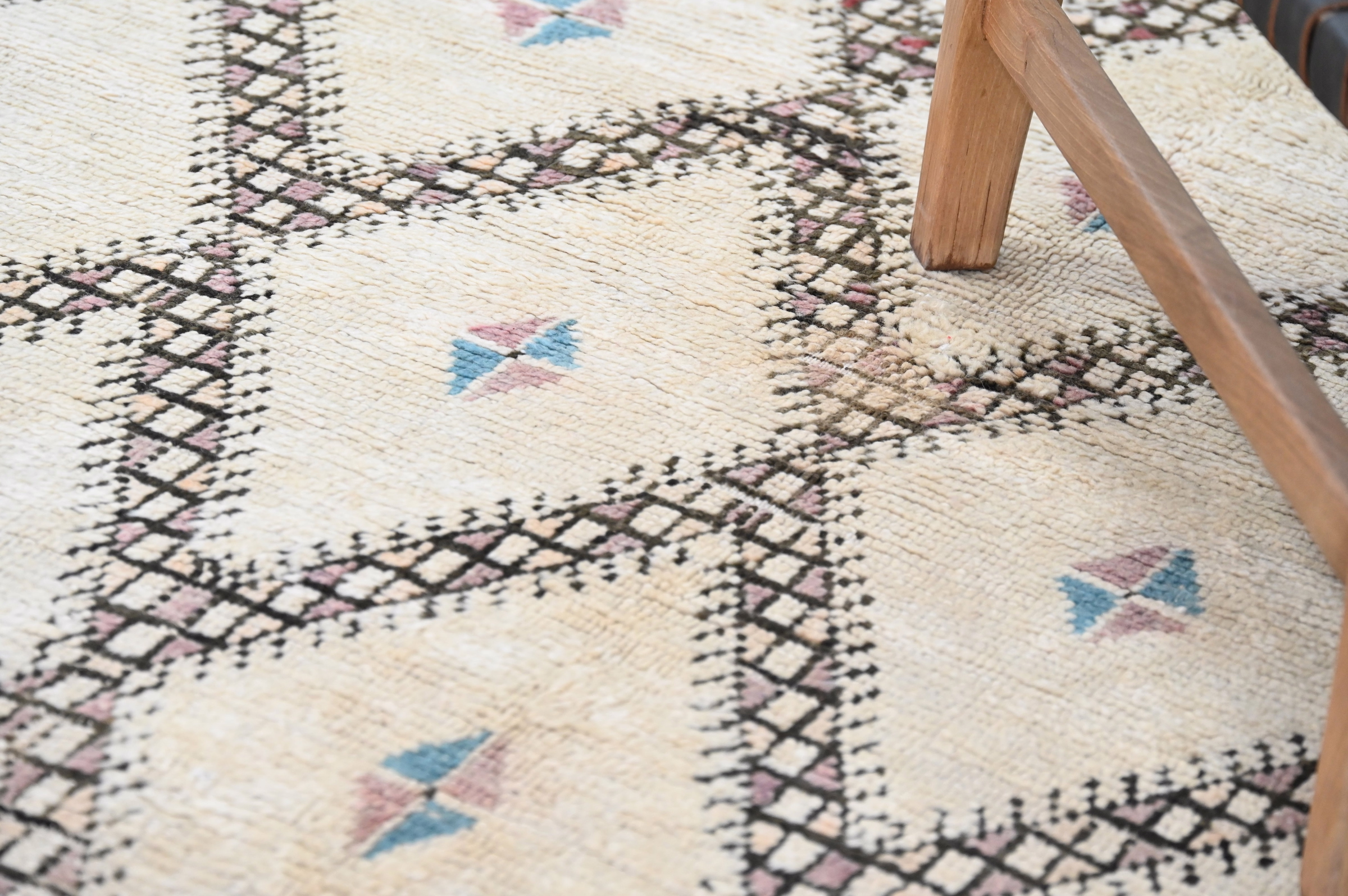 A textile of uncommon presence from the Atlas Mountains. Measuring 240 × 170 cm, this piece represents the intersection of ancestral technique and contemporary restraint—a piece for interiors that value substance over statement.