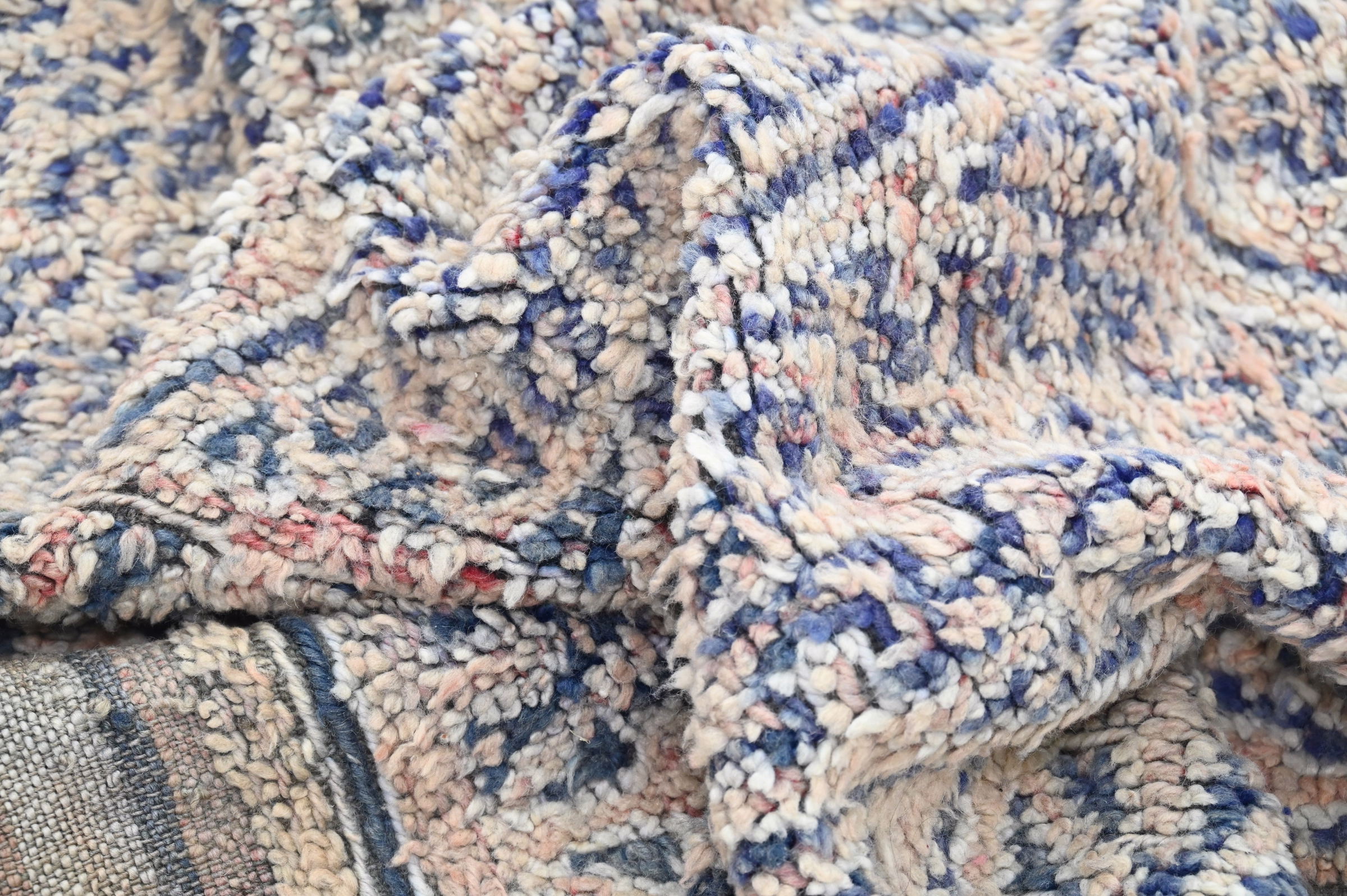 Handwoven in the Atlas Mountains, each piece emerges from a dialogue between material and maker. Measuring 285 × 183 cm, this piece carries the quiet rhythm of slow craftsmanship—wool prepared by hand, patterns emerging over weeks of focused work.